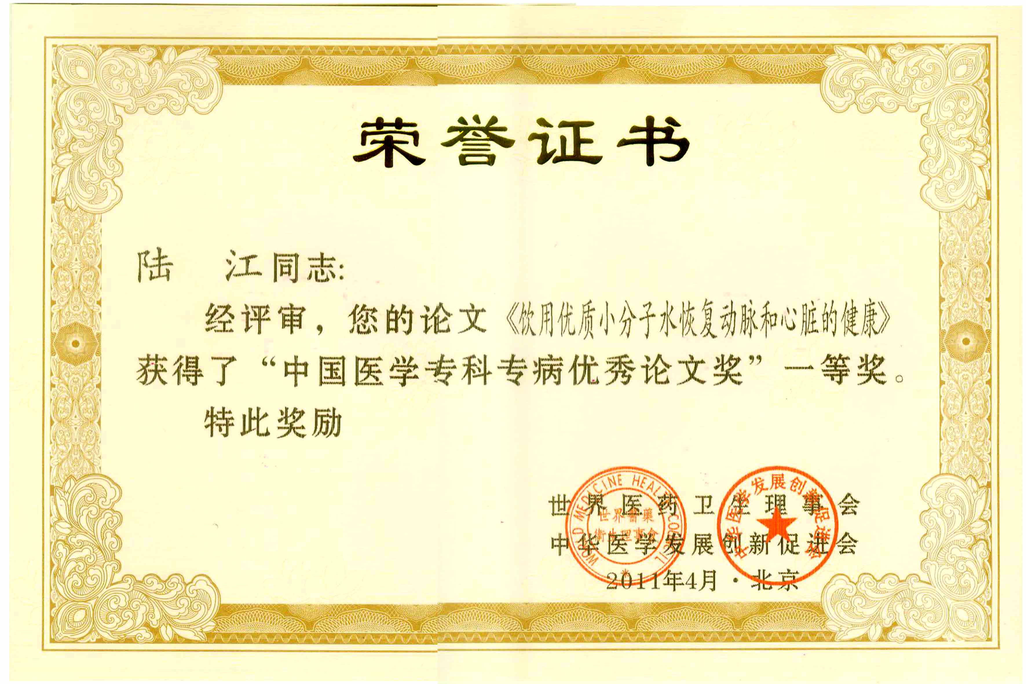 -----我是從事建筑的高工,本來沒有資格去攻克醫(yī)學難題,卻為了自身健康才扣響醫(yī)學的大門。由于我1990年患高血壓,因怕中風才研究發(fā)明了離子水瓶,我把水處理成微小分子團水,飲用后治愈了高血壓。便于1993年底送到三家省級醫(yī)院做臨床試用4個月。經北京和廣西醫(yī)學專家鑒定:"降脂降壓效果好"," 能擴大心腦動脈流量,改善心腦電圖以及微循環(huán)","對治療心腦動脈粥樣硬化、高血壓、高血脂有良好的醫(yī)療保健作用。""產品的技術性能和療效達到了同類產品的國內領先水平,經廣西醫(yī)學科學情報研究所檢索,未見國外有類似報道。"中國醫(yī)學科學院張正國教授從美國國立醫(yī)學圖書館數據庫存Medline檢索英俄文資料,均未見類似報告。2000年上市后,我為了對消費者負責而繼續(xù)觀察研究,一直通過《信譽卡》和《質量跟蹤調查書》向患者承諾療效,請用戶使用6個月后反饋效果。和脂壓患者飲用2至5個月內,消除癥狀,停服藥物,血壓正常;冠心病患者飲用3~5個月逐漸減輕至消除心絞痛、房顫等癥狀,不再服藥,飲用1年左右心電圖正常,經冠脈造影掃描無明顯狹窄,表明冠心病痊愈。大量患者還反映許多衰弱器官被修復,讓前列腺增生、慢性咽喉炎、慢性氣管炎、支氣管炎、慢性胃炎、腸炎和膽囊炎等不藥而愈;2型糖尿病患者是因為胰島衰弱致病,飲用該水半年至一年,逐漸減藥至停藥,血糖尿糖正常,真正治愈2型糖尿病。中風后遺癥患者飲用六七個月,可逐漸減輕至消除肢體和語言障礙,表明飲用該水能讓壽命很長的神經元細胞逐漸修復,奇跡般地恢復肢體和語言功能。飲用后還使胸腺和脾臟兩個重要的免疫器官被修復和增強,產生免疫細胞多,提高了免疫力,使人不生病或少生病。自此, 飲用微小分子團水創(chuàng)造了攻克冠心病、高(低)血壓和糖尿病三大醫(yī)學難題的奇跡。人們對此感到不可思議,但實踐是檢驗真理的唯一標準。
