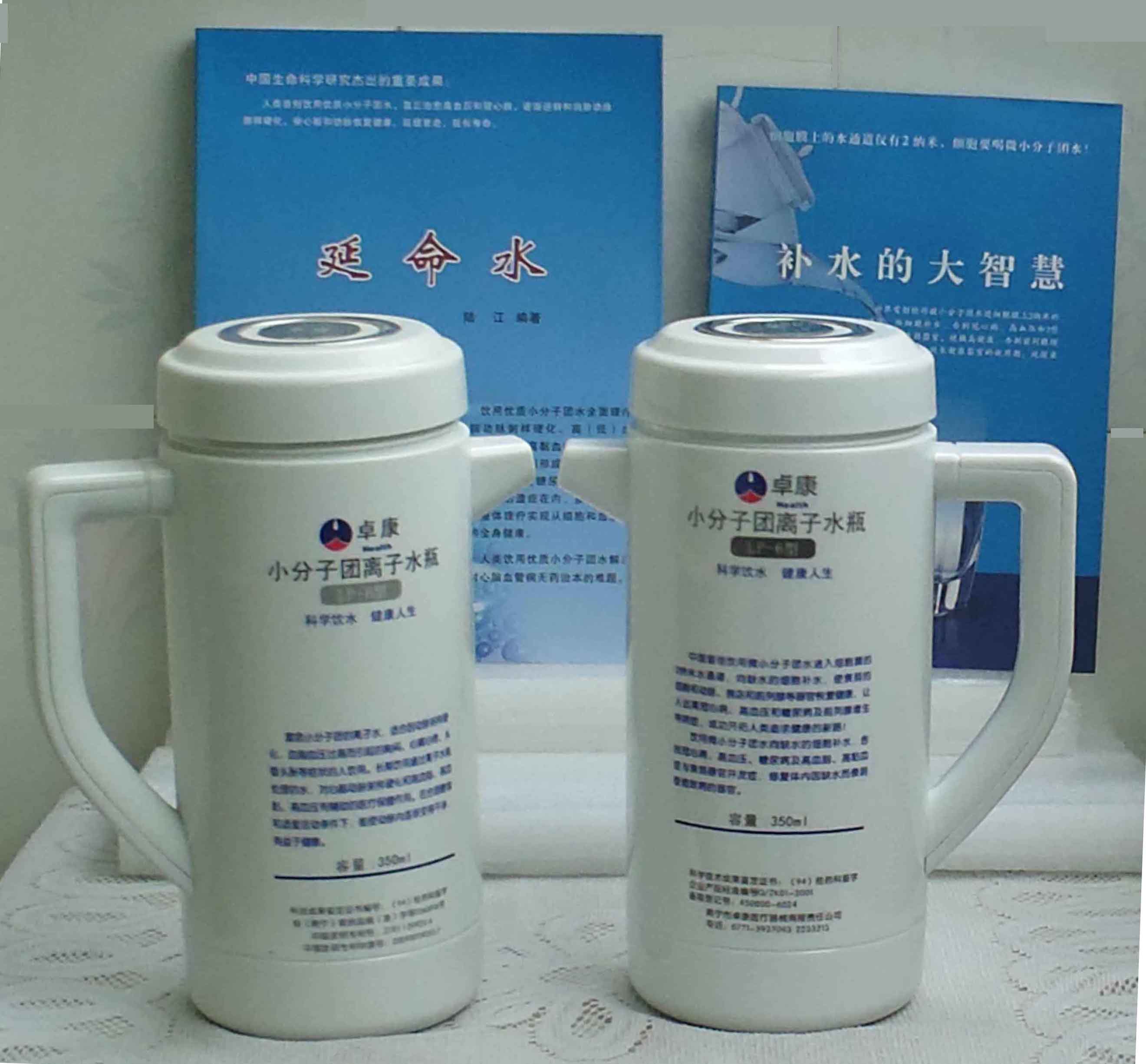 本品大量用戶的使用效果表明,能治愈冠心病、腦動脈硬化、原發(fā)性高(低)血壓、高血脂、高粘血癥、高血尿酸癥(痛風)和2型糖尿病、衰弱器官并發(fā)癥(前列腺增生、腎衰與尿毒癥)及中風后遺癥等療效好。產品配信譽卡。使用壽命30年,不換芯,易清洗。團購優(yōu)惠。從郵局匯款,匯費1%,地址按本頁下方地址、聯系人寫。從銀行匯款,請點擊[聯系匯款]欄,從工商銀行匯款,建設銀行、農業(yè)銀行匯款,均免收匯費,匯款后20--30分鐘內發(fā)短信,可用微信轉帳,均免匯費,微信號即手機號13768308380。匯款后,告知你的姓名和地址,我公司聯系人手機號是:13768308380。卓康牌離子水瓶為我公司獨家生產,郵購產品配《補水的大智慧》彩印書一本,另配四季出版社出版的新書《補水的大智慧》一本,并配光盤一張(含央視主持人釆訪陸江的對話視頻)。目前市場和"淘寶網"上有人兜售假冒的偽品,望讀者審察辯別真?zhèn)危旒僬哓飧`假冒本公司的各種認證、獲獎獎項、專利號和外包裝盒上的中英文字,包括科技成果的鑒定意見等,請讀者注意防偽。如何識別假貨?已經買了假貨怎么辦?(請點擊[打假掠影][打假掠影])。